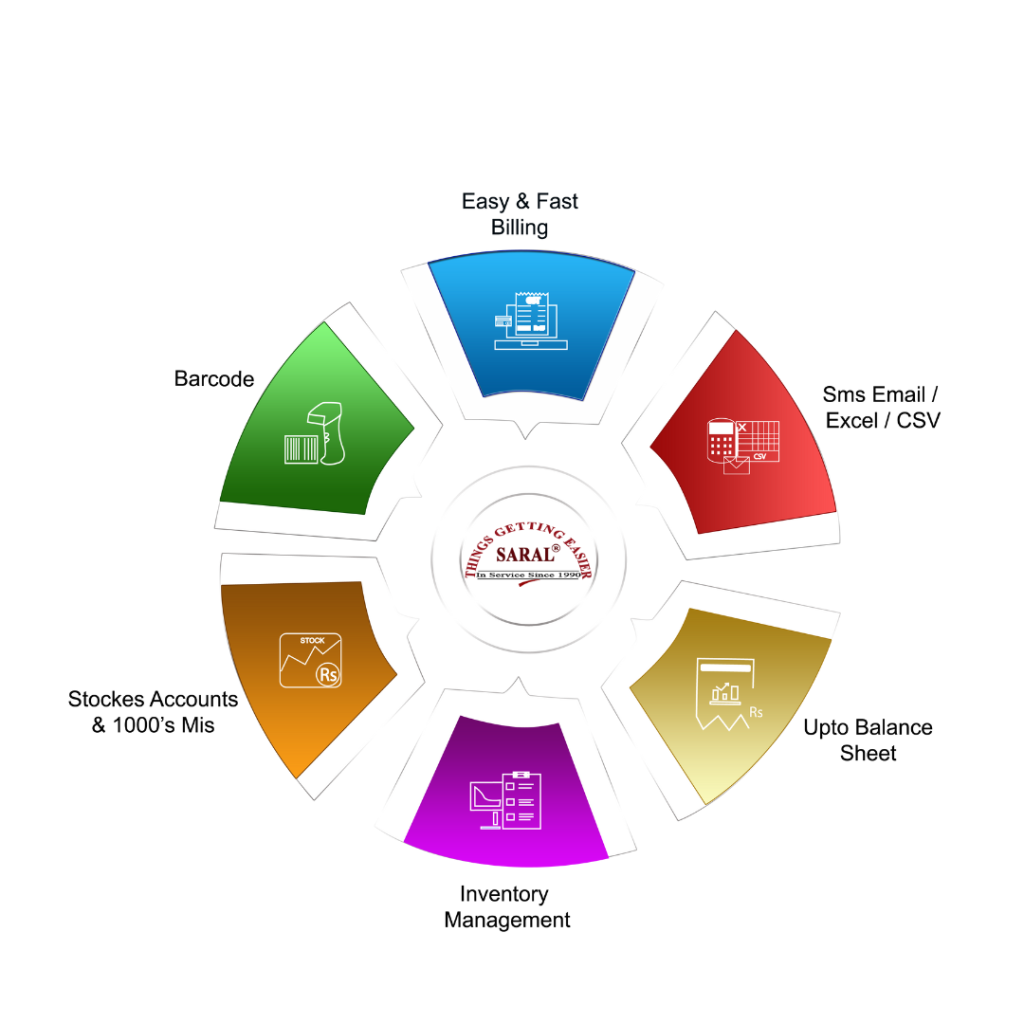 Accounts ERP Accounts ERP Easy AccountsGST BillingInventory ManagementBarcodingAccounts up to Balance Sheet Saral Computers Pvt. Ltd Things Getting Easier Since 1990 Contact Us Now!